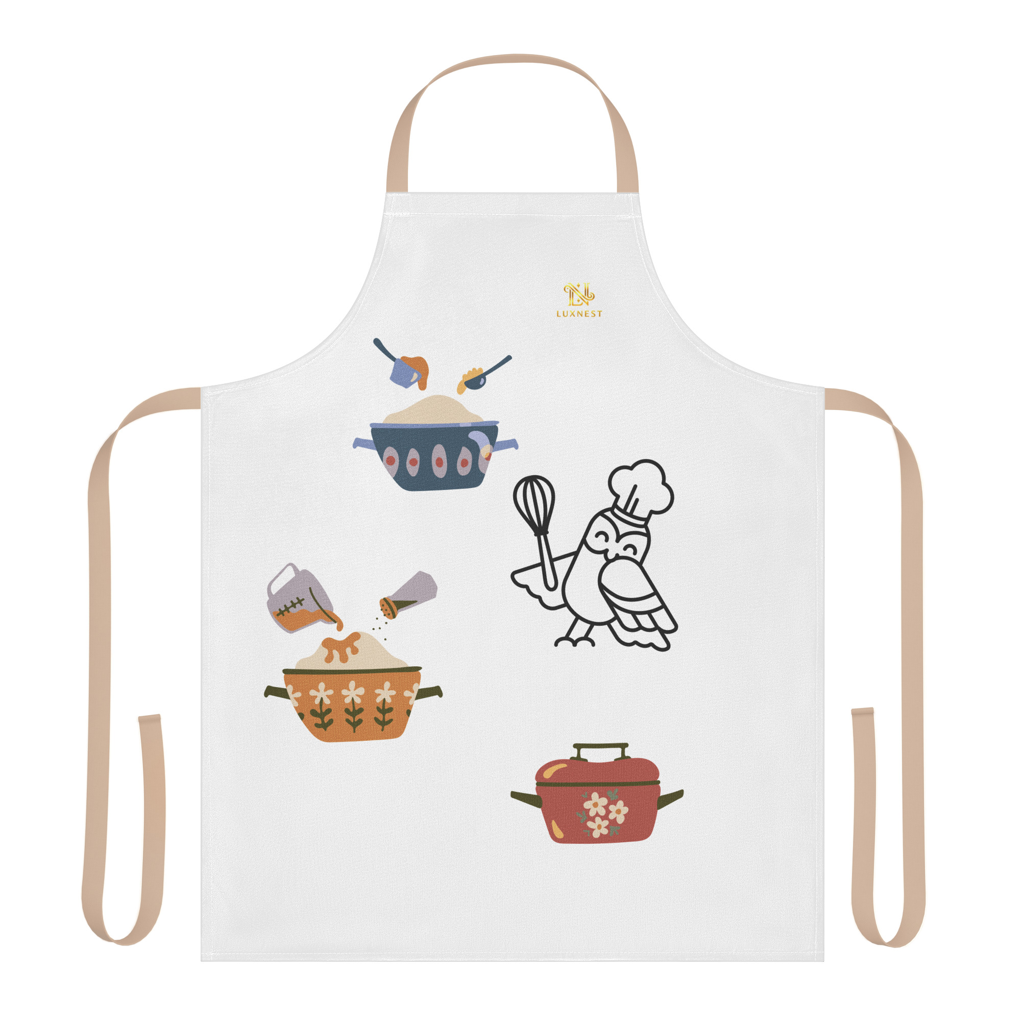 Add a pop of character to your cooking routine with this strap apron. Its smooth polyester fabric and easy tie-back fit keep you comfortable while protecting your clothes.